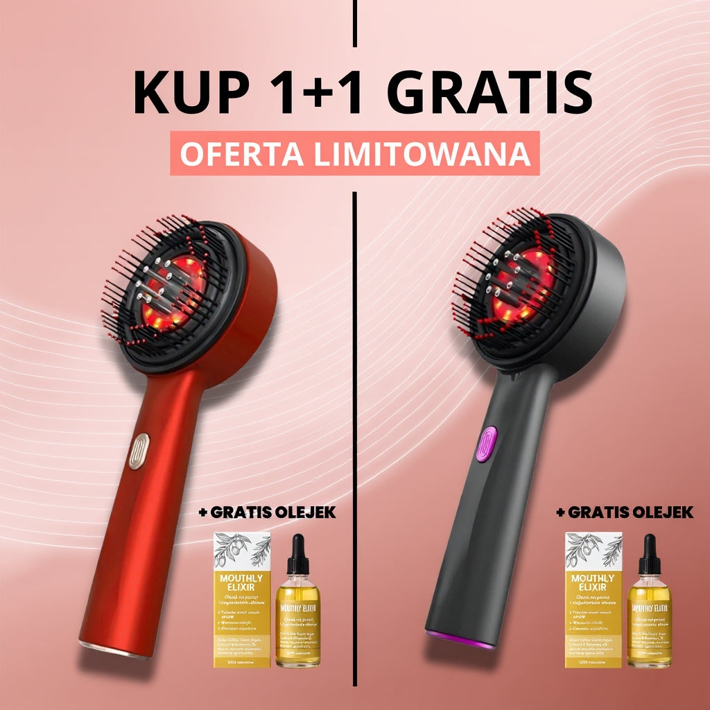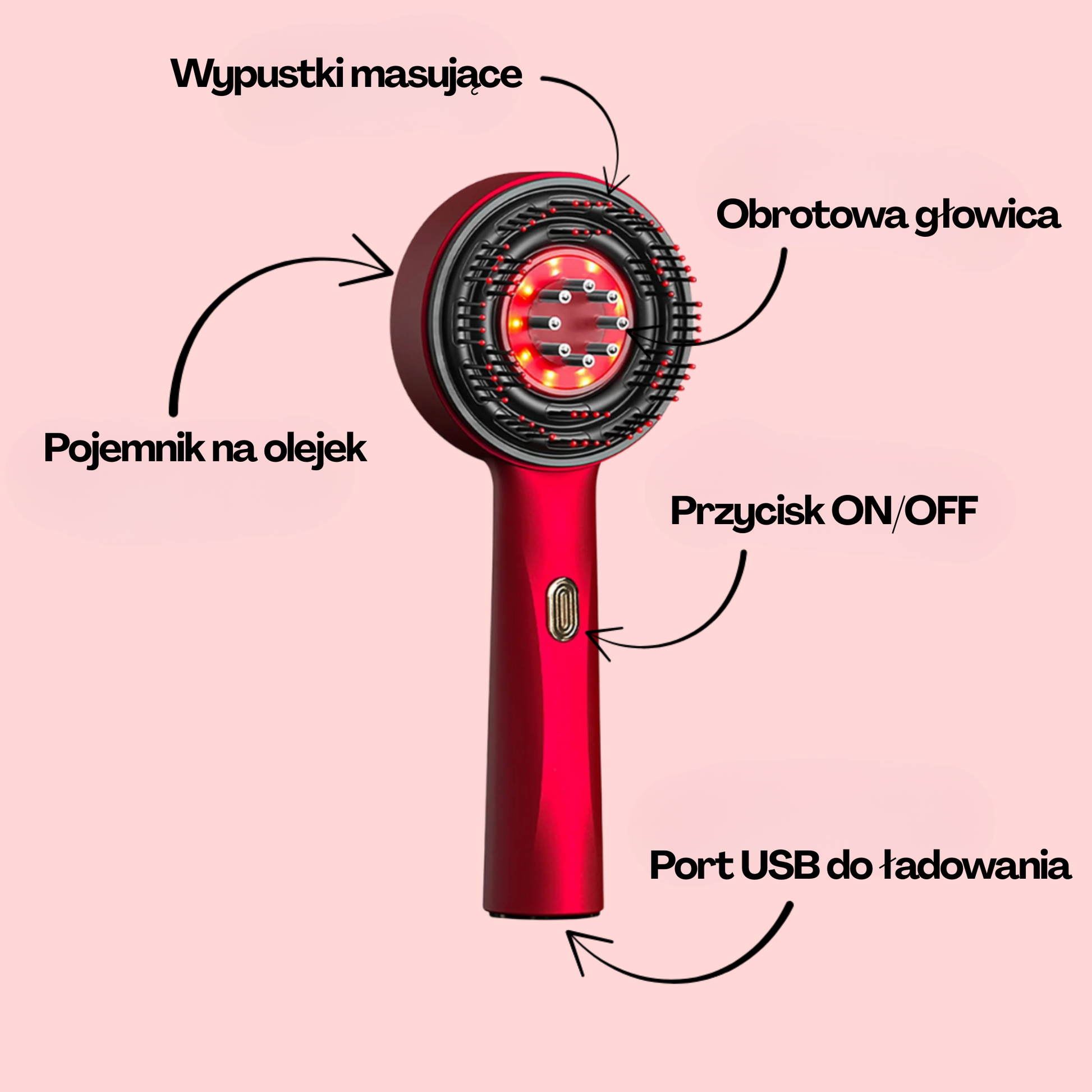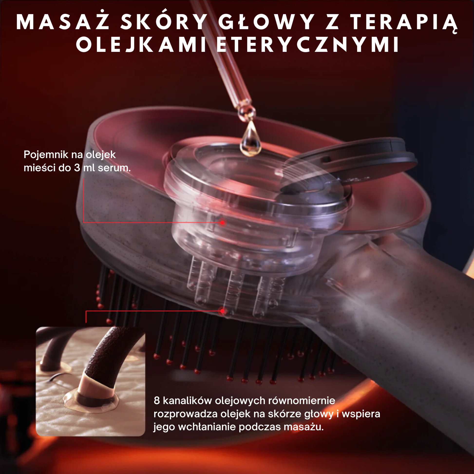 Odpowiedź 1:Tak. Masaż + czerwone światło + aplikacja olejku pobudzają krążenie, wzmacniają cebulki i poprawiają kondycję skóry głowy, co sprzyja szybszemu wzrostowi włosów.